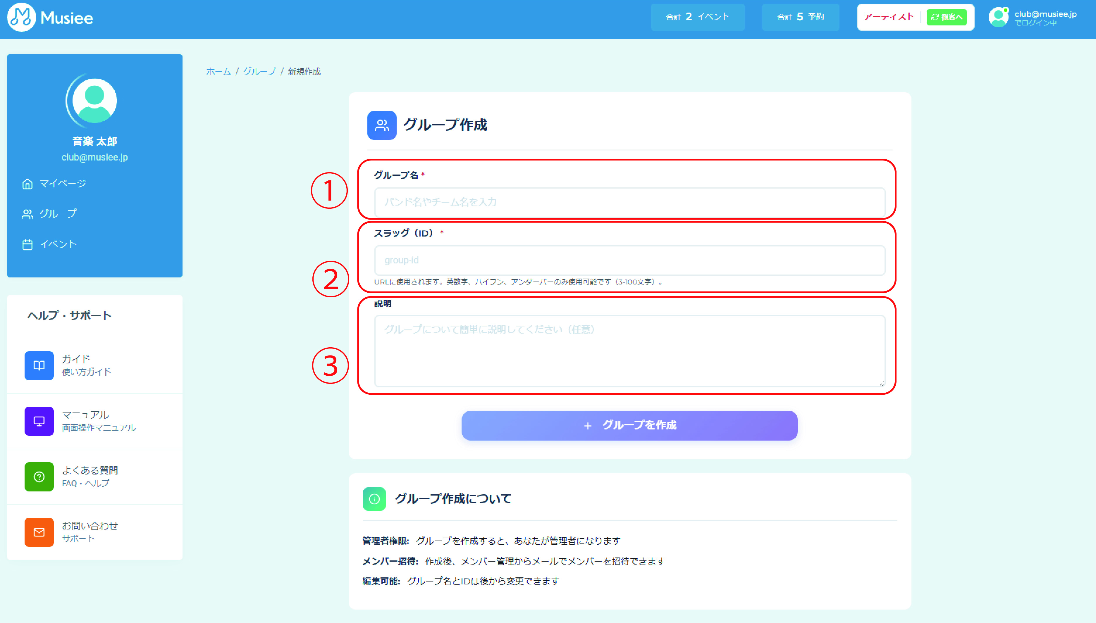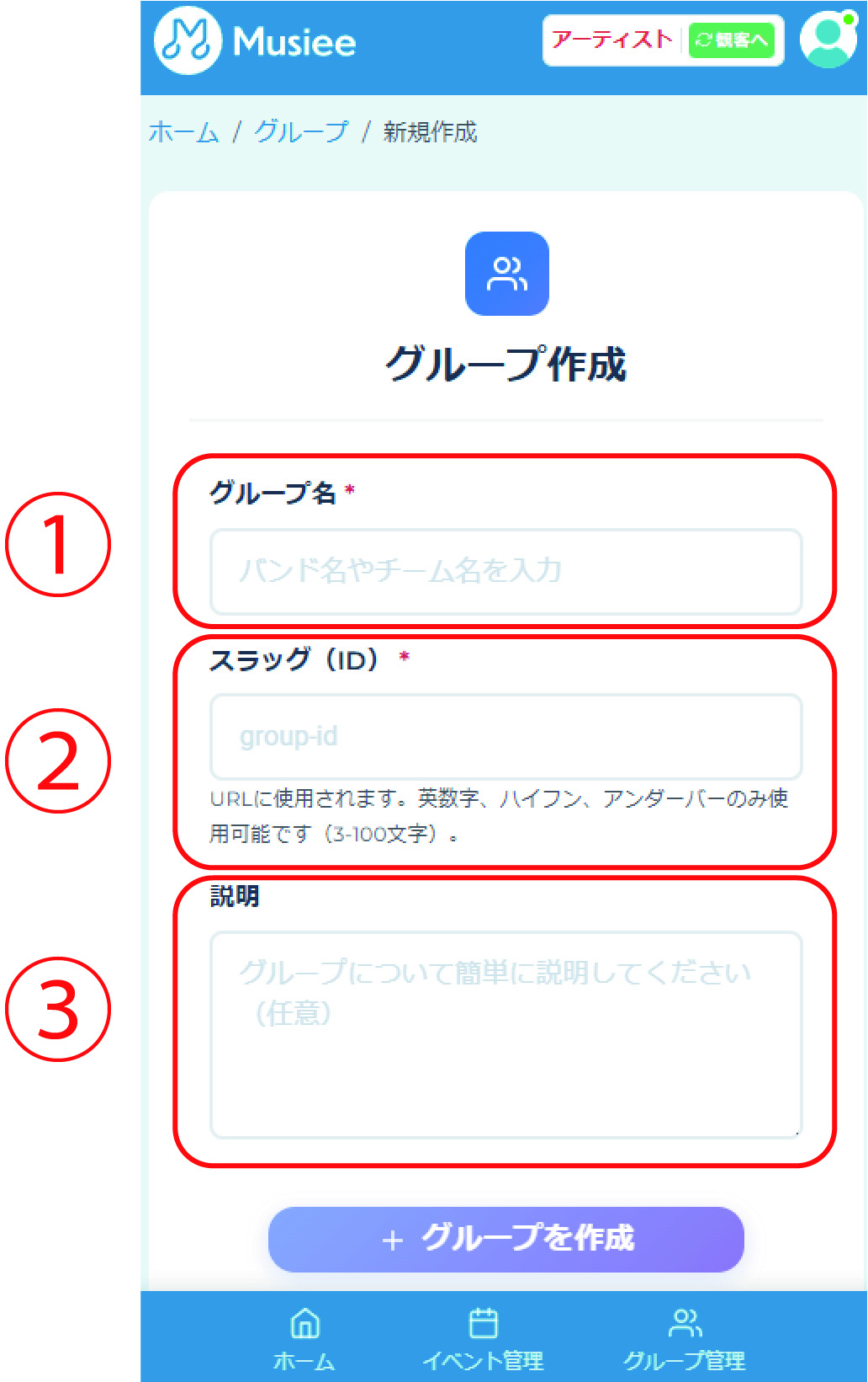 ソロの方も、ソロ名義でグループ名のご登録をお願いします。