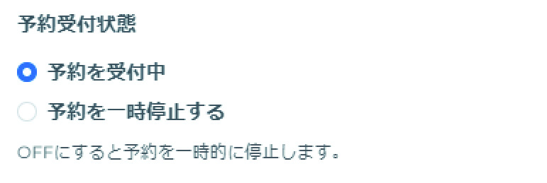 「予約を一時停止する」を選択して保存することによって、予約受付を一時的に停止できます。