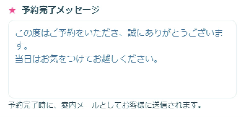完了時に案内メールとしてお客様に送信されるため、テキストを入力ください。