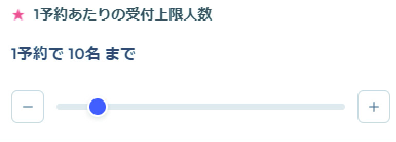 スライドすることで1度に予約できる人数を調整できます。(初期設定は10名)