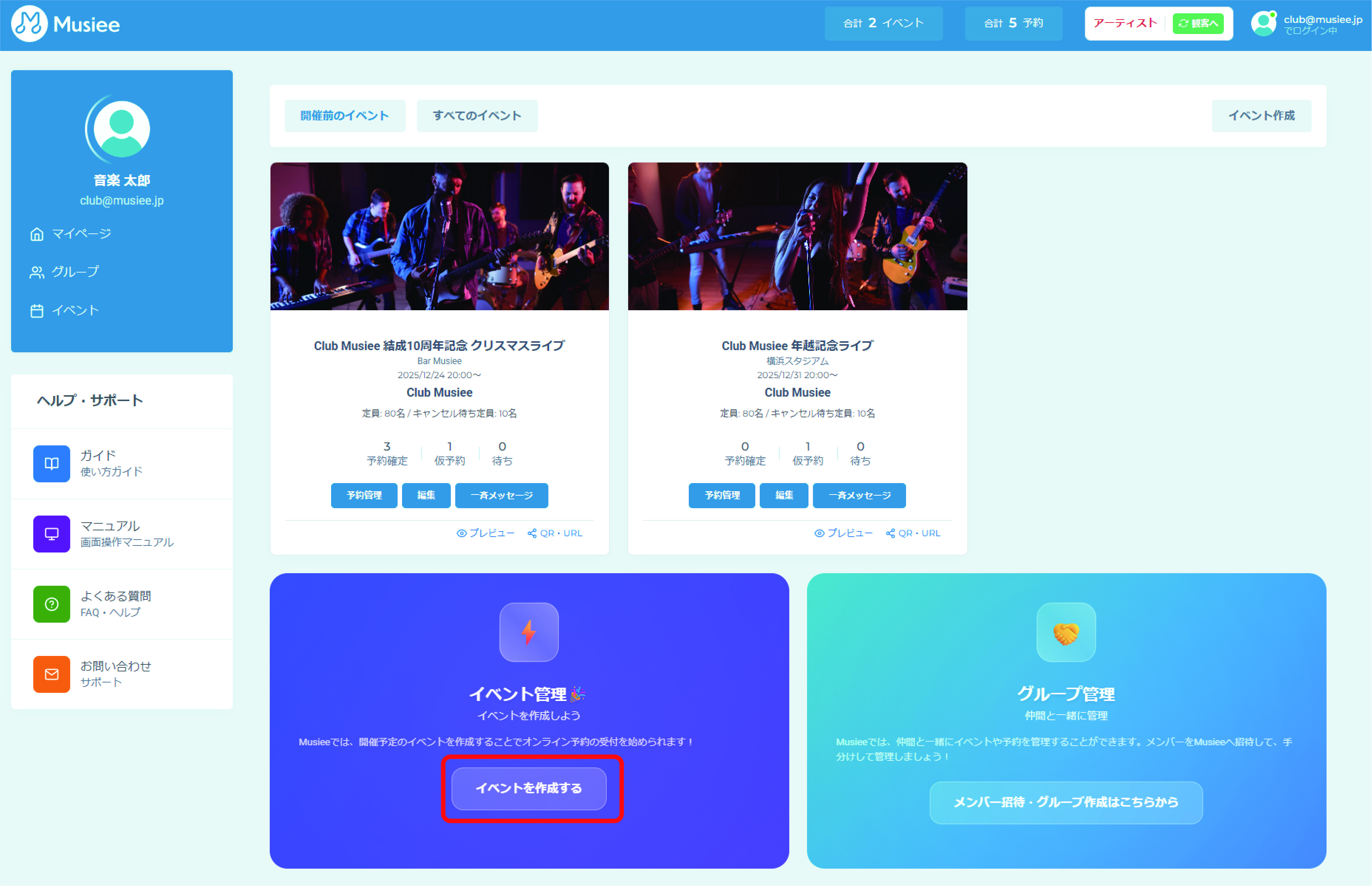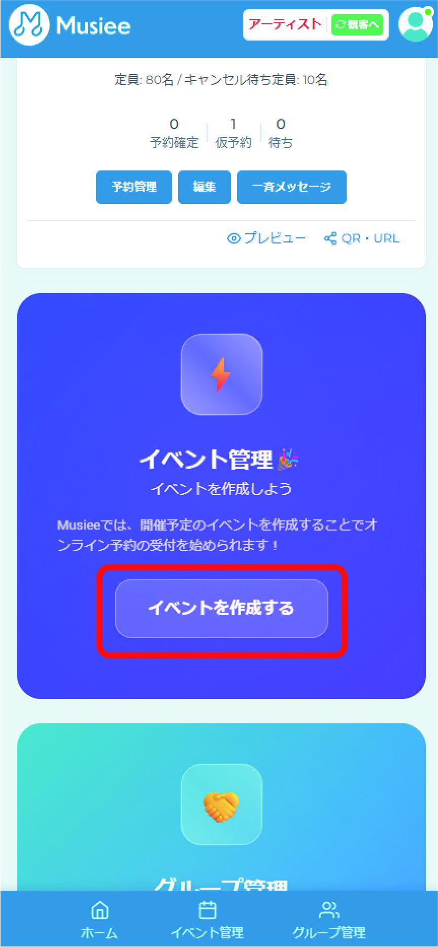 グループの招待が完了したら、イベントを立ち上げましょう。
